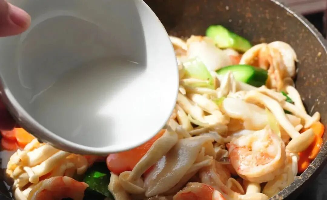 其次,由于生粉质地细腻,所以,在烹调中还可以用来勾芡,以提高菜品的光泽度以及食材的顺滑度!比如很多菜肴在最后要淋上一层芡汁,吃起来嫩滑爽口,而这层晶莹剔透的芡汁就得用生粉!