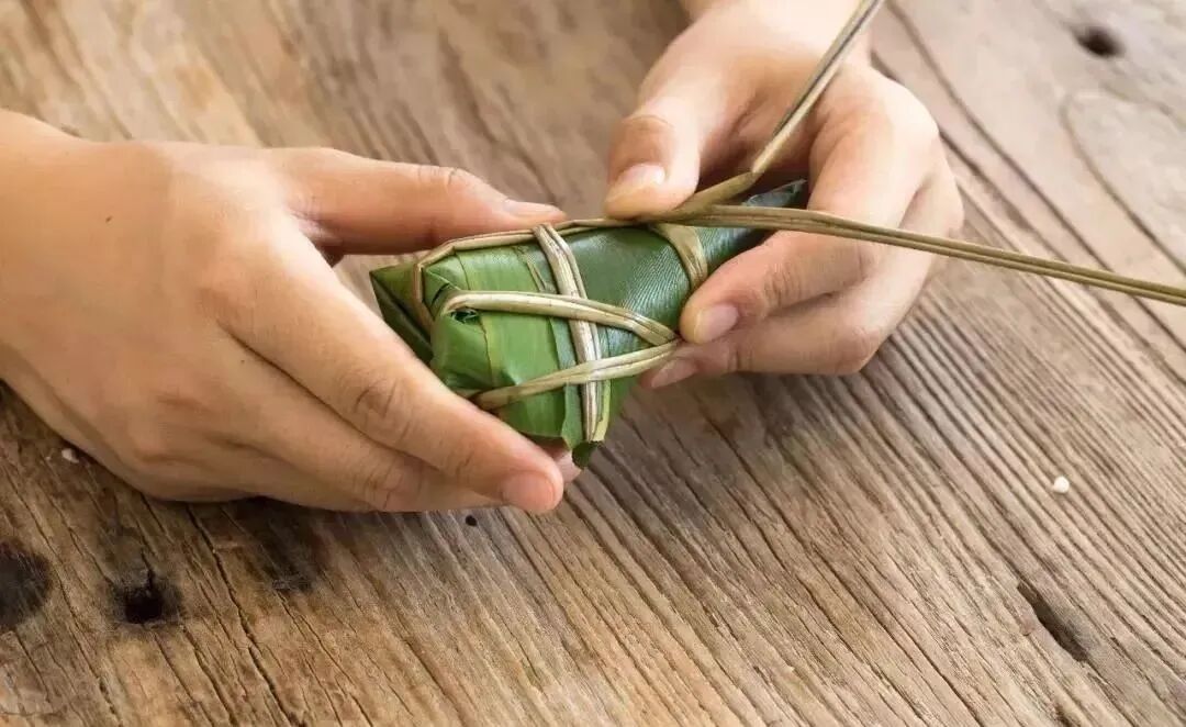 光面朝内,装九分满:其次,用粽叶包粽子,要叶子的光面朝内。包的时候,要叶柄相对,光面朝上,重叠在一起,卷成一个圆锥状。这样,粽子的基本形状就出来了!