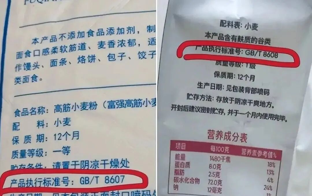小贴士:市面上很多面粉并没有标注出来,只能通过面粉的执行标准来区分;低筋面粉为GB/T8608,中筋面为GB/T1355,高筋面粉为GB/T8607!其次,像饺子粉这一类的面粉,也是高筋面粉,不适合用来蒸馒头!