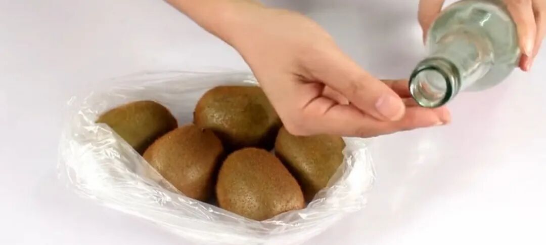 其次,如果家里有喝酒的朋友,用酒也是可以催熟水果的!但是,酒必须要用高度的白酒!具体的方法是:把猕猴桃放在保鲜袋中,再用一小团棉花吸满一瓶盖的高度白酒,放入猕猴桃中,然后再把袋子里的空气挤出,扎紧口后,放在家里温度高点的地方便可,比如阳台、暖气旁等等!
