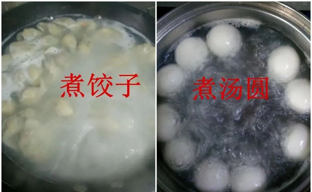 但大家发现没,煮饺子的水会溢出,但煮汤圆的水却不会溢出!因为,汤圆是圆的,水沸腾后,它会顺着水面翻滚,而水也会顺着汤圆回流到锅中去;反之煮饺子,在开锅后,所有的饺子都会漂浮在水面上,再加上饺子皮带有少量的面粉,与水相融后改变水的性质。所以,如果不加水,饺子汤就会溢出!