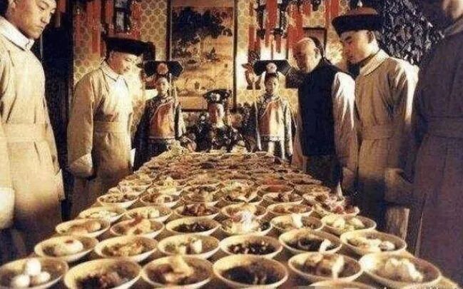 她一声传膳,大小太监列队恭候,肴馔即刻就要摆好,少数特殊的随吃随上。肴馔上席后,慈禧要过目一番,满意的留下,不想吃的即刻辙下。