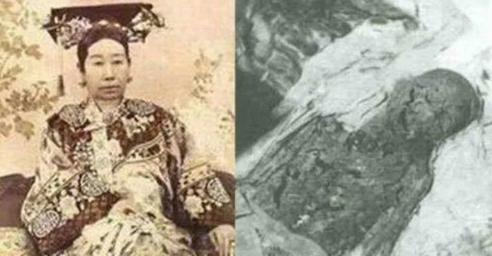 1984年元月,内棺被专家打开,确认这个上身包裹黄绸、下体裤子上绣满“寿”字、右脚穿白绫袜、左脚赤裸的完整尸骨,就是慈禧。人们见到的内棺已入整修后的外椁。楠木棺椁华丽可辨,但棺内含恨吞辱的慈禧却永远无法“安卧”。正是她对自己死后之葬也要如此骄奢,引来了整个清东陵(除顺治孝陵)屡屡被掘的“奇辱大难”。