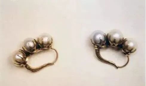据老太监们说,这副耳环是慈禧进宫时,咸丰皇帝赏给她的。慈禧每次戴两副耳环,因为她有四个耳孔。
