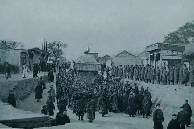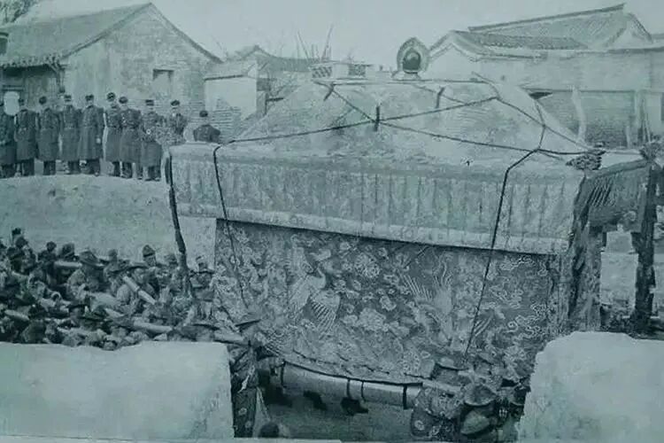 慈禧出殡那天,大街上人山人海,两边挤满了围观的群众,就单单灵柩,就有几百人换着抬。