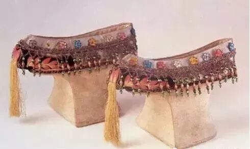 她有一款大典时才穿的绣花鞋,鞋底很高,四周缀有小珍珠串,如同穗子一样。