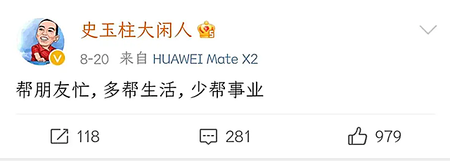 史玉柱在他的微博里表达自己的委屈“帮朋友忙,多帮生活,少帮事业”。