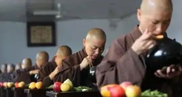 乞食回来后,所有僧人需要将乞到的食物倒出上交,然后依次而坐,等待过斋。