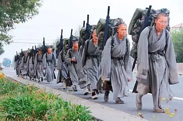 一列青灰色的行者,自然会引起群众的关注,甚至偶尔还会被不解的群众误认为坏人,这时,她们依旧是继续着自己的修行,在风雨中,在注目中。