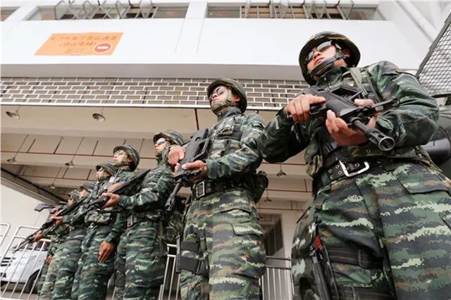30多名武警官兵持枪把守着法院的各个入口。