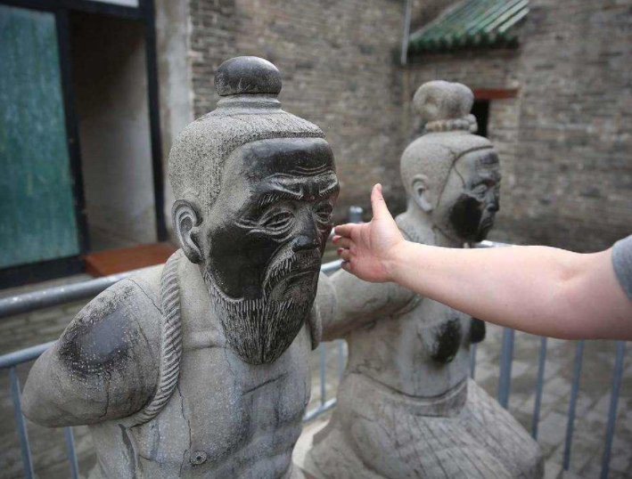 同行的人都看着跪在一旁的秦桧夫妇的铜像,指指点点。唯有秦大士,看后心里很不是滋味,一言不发。
