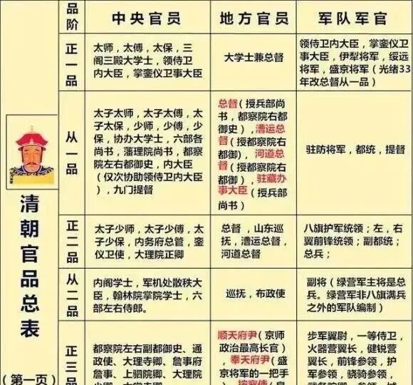 清朝基本上是继承了明朝的官制,但是又有自己的改良,并且在品级上面也大不相同,总而言之那就是清朝的官职不值钱,很多职务都可以达到从一品级别。