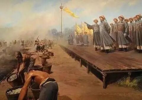 随着一声令下,提前准备好的盐水缓缓倒入水沟中,并将鸦片割成几瓣,倒入水池,浸泡半日后,又倒入生石灰,石灰遇到水便沸腾,林则徐命士兵拿着木耙不停的在池子中搅拌,一直到烟土完全溶入水中,方才停止。
