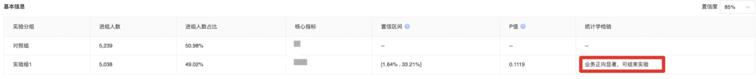 实验结论:百度统计会提供科学的实验报告,并给出实验组和对照组哪组更优胜的结论,更好地帮助了运营同学判断哪个方案更吸引客户。