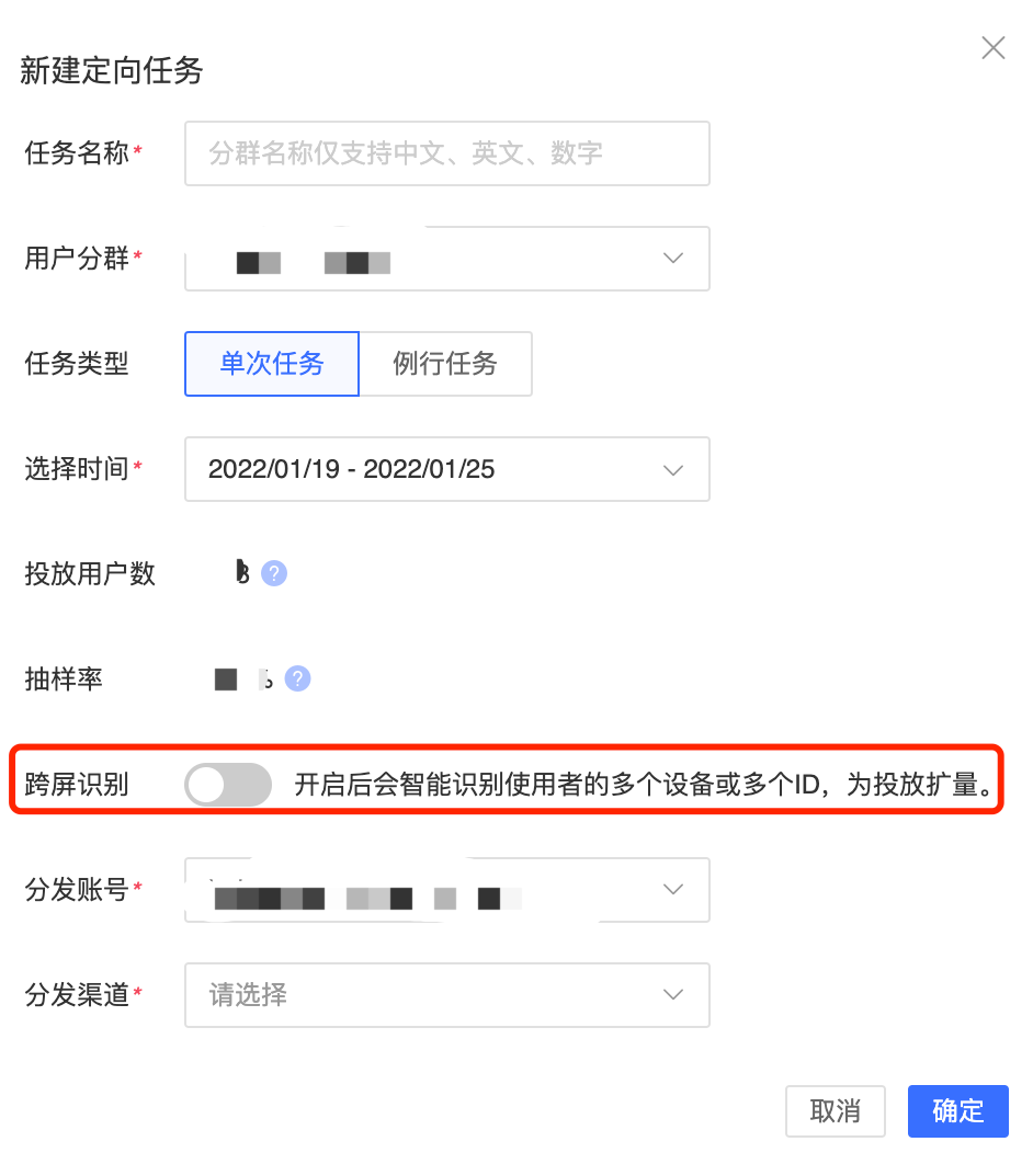 新增选项「跨屏识别」,智能识别多个使用者的设备和ID,为投放扩量。