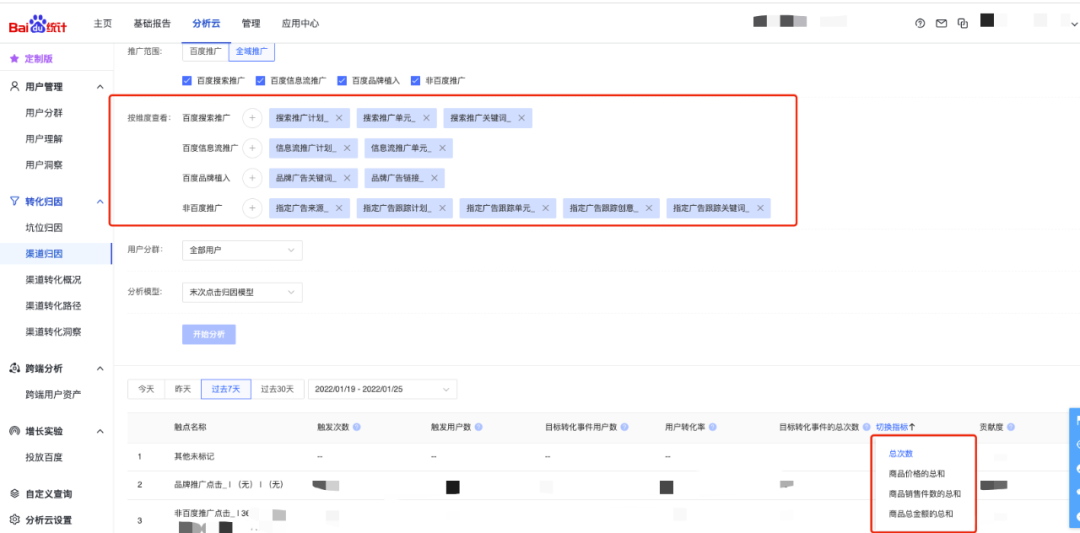新增支持按照渠道计划、单元、关键词等维度分析,归因分析更精细化。