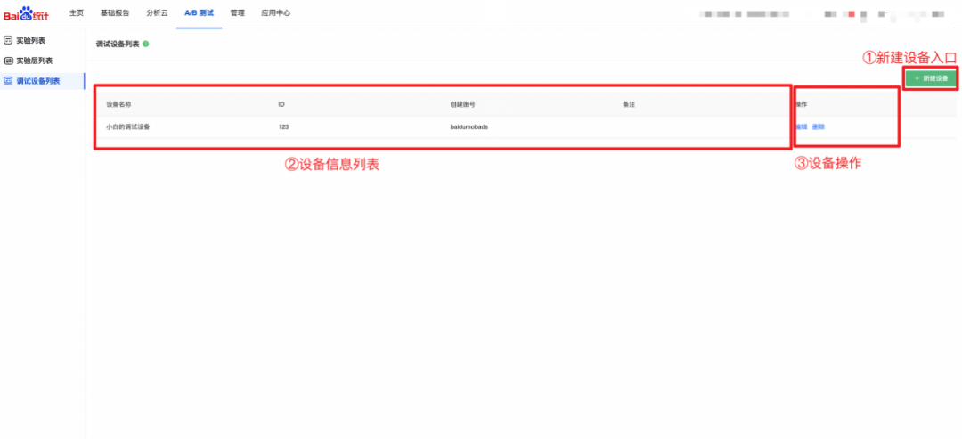 (3)调试设备管理:在列表中的设备可用于试验测试与调试。