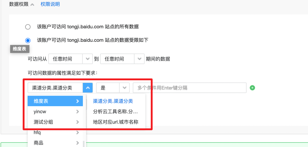 报告授权数据:支持通过维度表设置权限范围,贴合业务需要多维度控制数据权限。