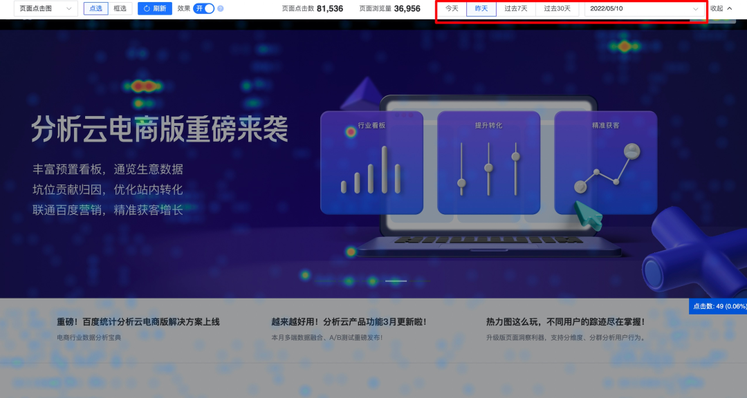 热力图弹出式页面增加时间筛选项,支持查看累计数据,分析能力更灵活。