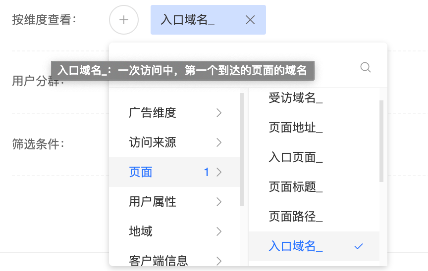 增加「入口域名」维度,支持从入口页面的域名维度分析数据表现。