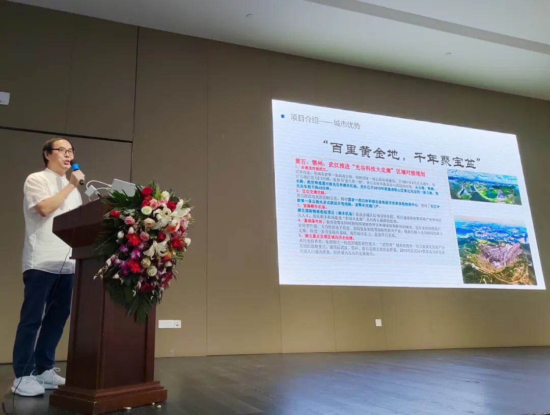 产业资源分享环节,武汉、黄冈、黄石各项目的招商负责人分别就项目特点、优势资源、合作机制等方面进行分享交流。