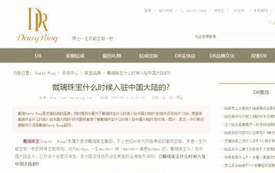 在维权过程中,曹菁还把DR的品牌历史也挖了出来,证明其在2011年刚成立,却在官网上宣传自己前身是“香港戴瑞珠宝集团”,成立于上世纪90年代。