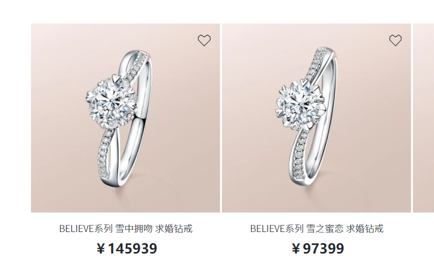 从DR官网来看,一枚普通的1克拉订婚钻戒能卖到14万,跟蒂芙尼不相上下。