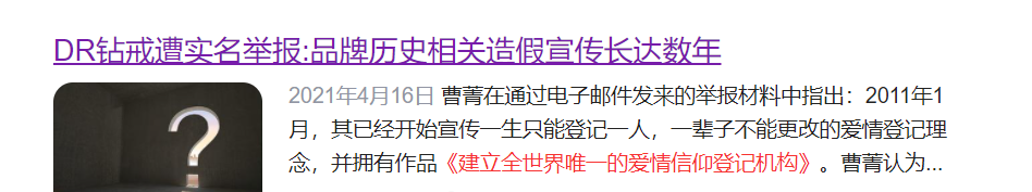 腾讯网. 《DR钻戒遭实名举报:品牌历史相关造假宣传长达数年》