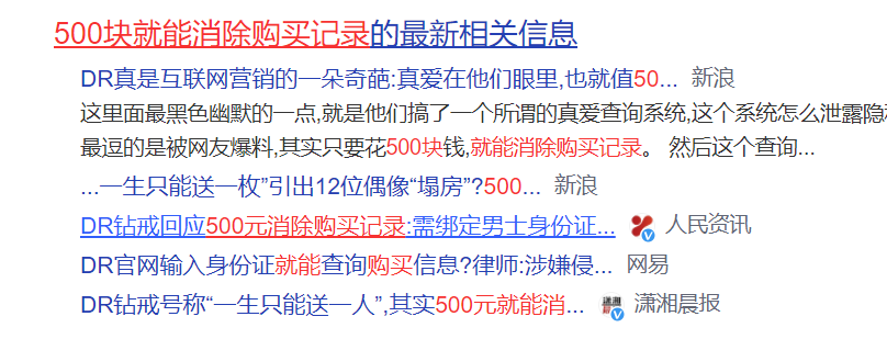 不仅如此,网上还风传,DR的真爱查询系统,只要500块就能消除购买记录。