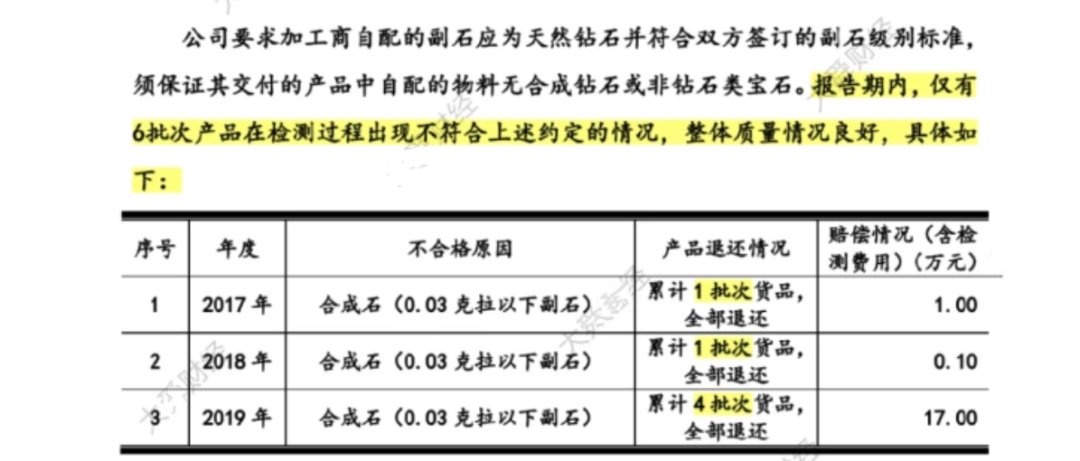 更扎心的是,2017年至2019年,DR有六批次产品都被查出,用合成石冒充天然钻石。
