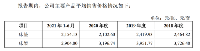 招股书显示,2018年-2020年,慕思床垫的平均售价分别为2464.82元/张、2419.93元/张和2102.6元/张。