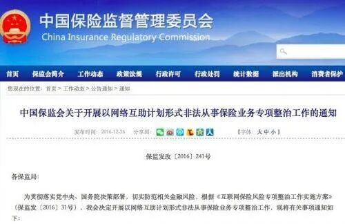 但早在2016年底,中国保监会就已经明确指出:网络互助不是保险。