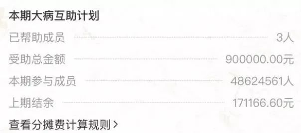 举例来讲:一个30万元的赔付,平台规定必须凑够330万人才能进行分摊,每人只要拿出1毛钱。