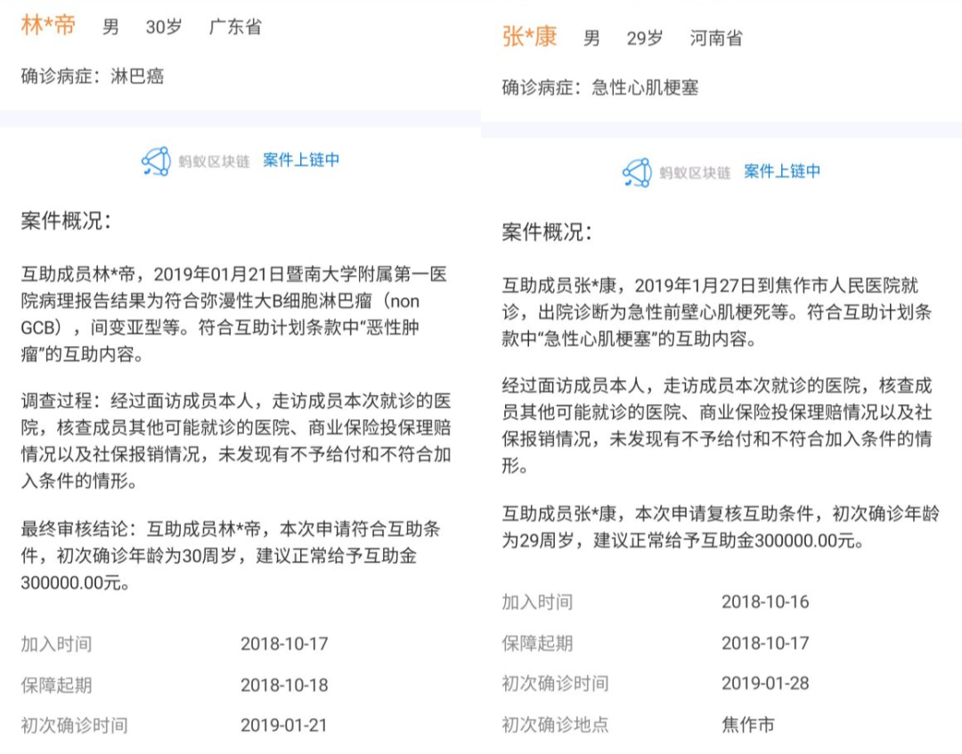 比如焦作市的一位29岁用户,2018年10月入驻平台,转年1月就确诊就得了心肌梗死;同期,广东省的一位30岁用户,确诊的是淋巴癌。