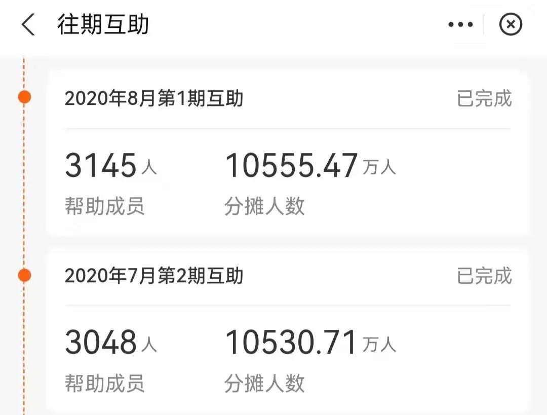 互助人数最多的一期,公示显示有1.06亿人参与互助金分摊。