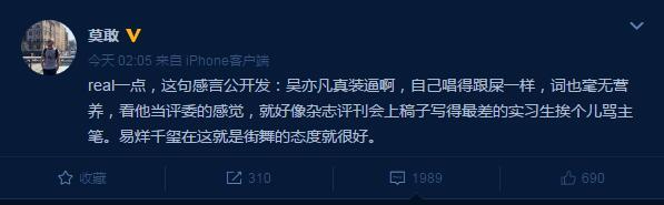然而到了后期大家逐渐发现,不时问出“你会freestyle吗?”的吴亦凡,只是用苛刻掩盖自己嘻哈表演的尴尬。