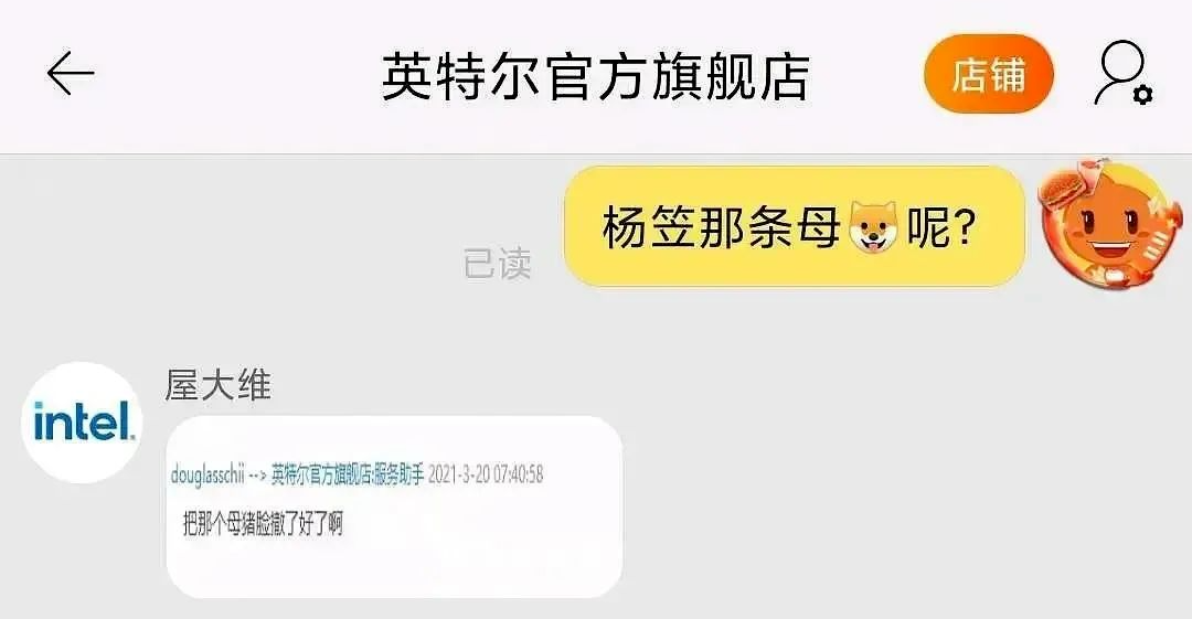 有网友直接去英特尔的淘宝店找客服投诉,强烈要求品牌解除与杨笠的合作。