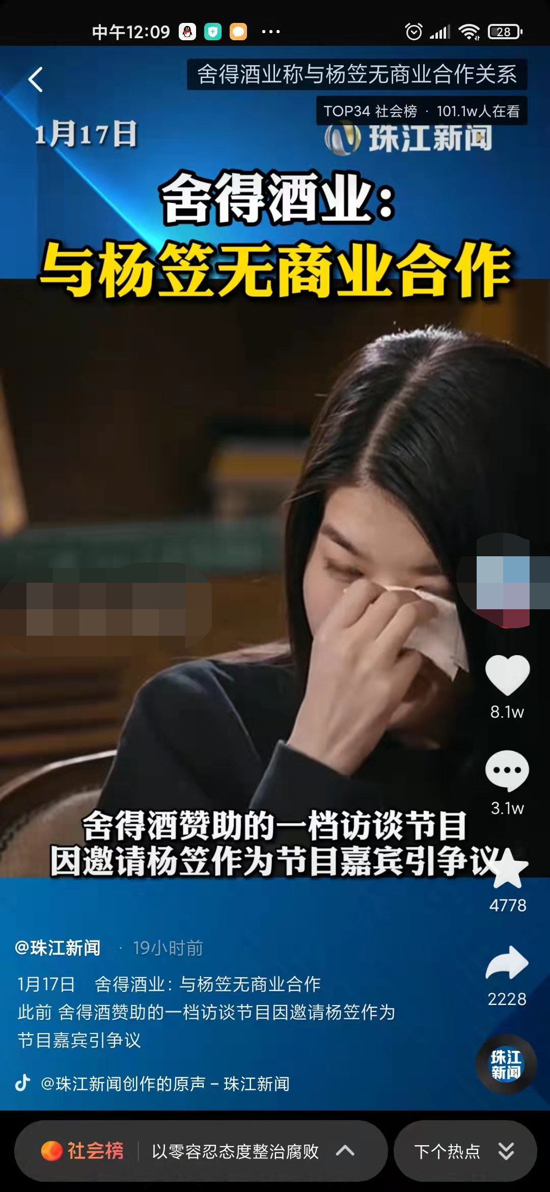 最近,白酒品牌舍得酒,只是因为赞助的一档节目,栏目组请杨笠参加了一个人物访谈节目,没有艺人合作,就引来了网友大闹直播间。