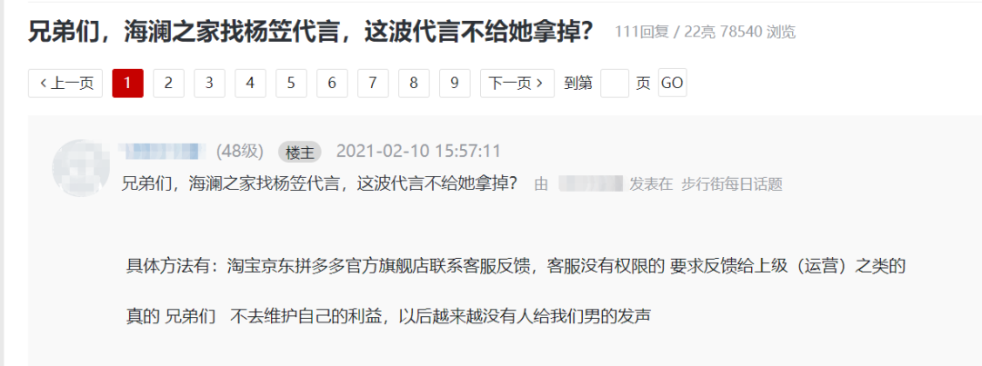 虎扑社区甚至有人组织起了“拿掉杨笠代言”的活动,动员“家人们”用各种方式抵制杨笠。