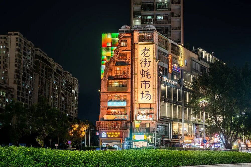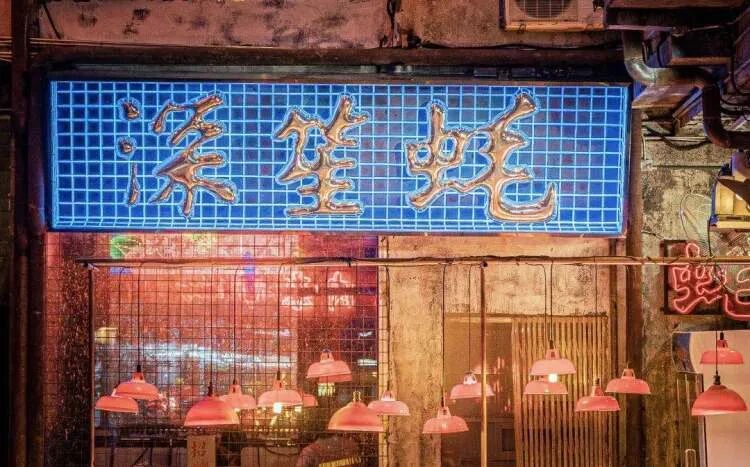 在文和友里,有80、90年代的红砖房混搭50年代单位宿舍,以及密密麻麻的垂直招牌、繁体字标语、闪烁的霓虹灯、褪色的锅碗瓢盆等等。
