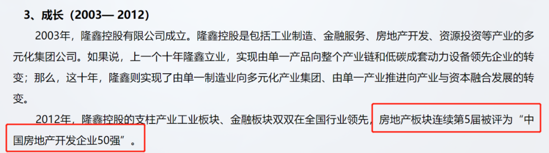 起初,隆鑫地产做得有模有样。隆鑫官网上介绍道:2012年,房地产板块连续第5届被评为“中国房地产开发企业50强”。