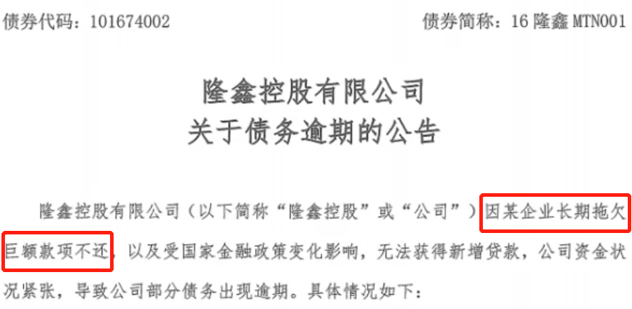 但是涂建华始终没说究竟是谁欠钱不还,隆鑫的公告里也只敢写是“某企业”。