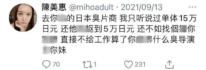 之前在日本拍片的陈美惠,因为疫情,一部片子的片酬从56万日元降低到5万日元,折成人民币只有2600元,吃饭都成问题。