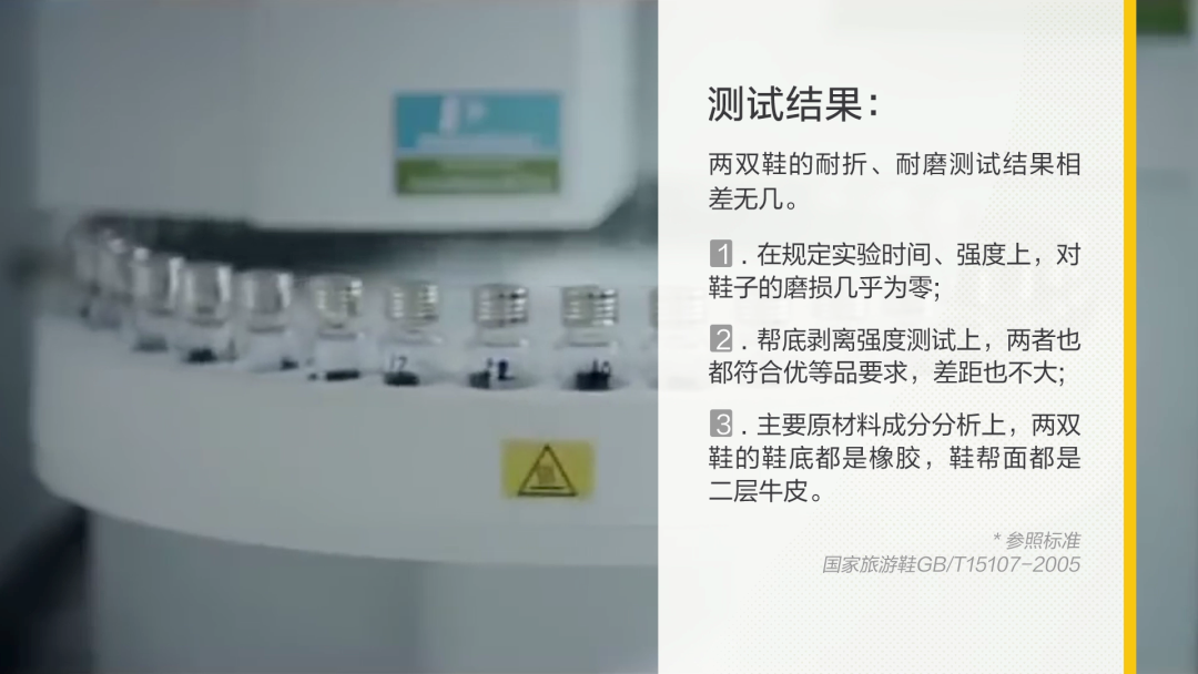 温州质检院曾测量一款阿迪达斯跑鞋,发现高仿和正品鞋在材质、耐磨度和耐折度上相差无几,唯一的差别在于鞋底的软硬程度。