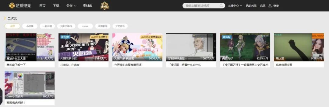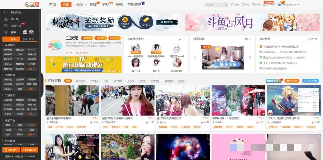 仅在二次元领域,虎牙和斗鱼都有比较丰富的内容,B站更是以二次元起家。