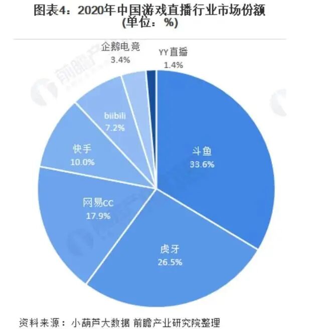 根据2020年数据,虎牙与斗鱼占据了60%的市场份额,而企鹅电竞的市场份额只有3.4%。
