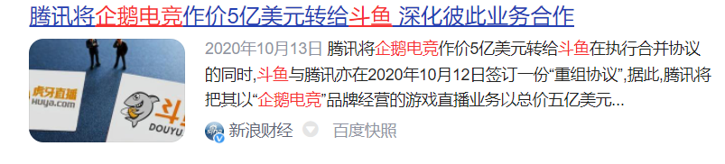 2020年10月,就连亲爸爸腾讯也坐不住了,希望能将企鹅电竞作价5亿美元卖给斗鱼。