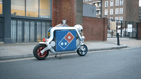 达美乐为了送块披萨,使用军事机器人技术,研发送餐机器人,能在32公里之外下单。