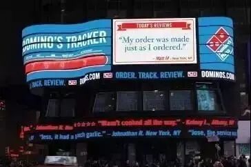 达美乐倒也没回避,直接租下纽约时代广场上著名的广告屏幕,毫不留情地放出网友的吐槽。