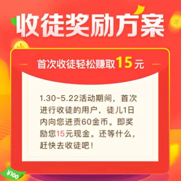 不仅要持续拉新,还得把用户留住,趣头条设计了一个“收徒”的玩法。